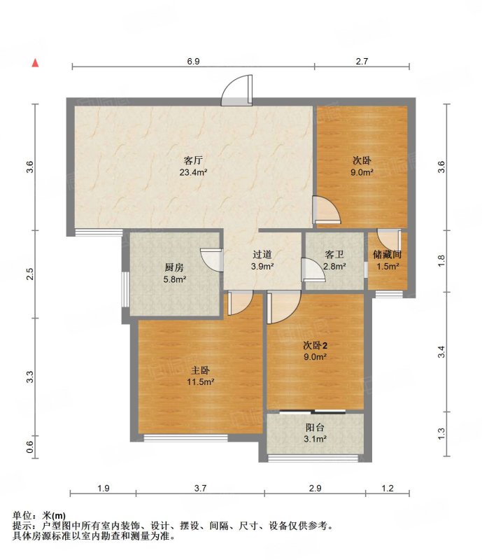 朝向南 建筑面积97.2㎡