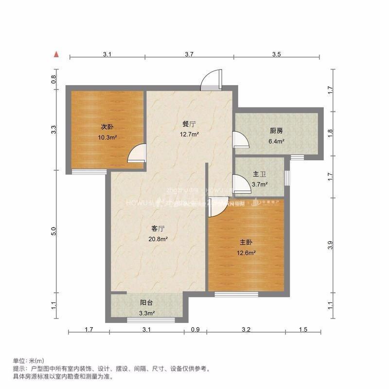 厅室2室1厅1卫1阳台