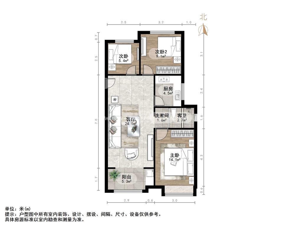 厅室3室2厅1卫1阳台