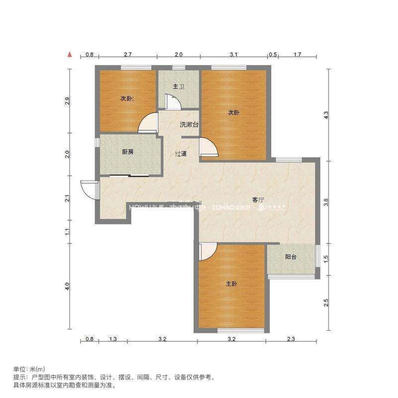 厅室3室2厅1卫1阳台