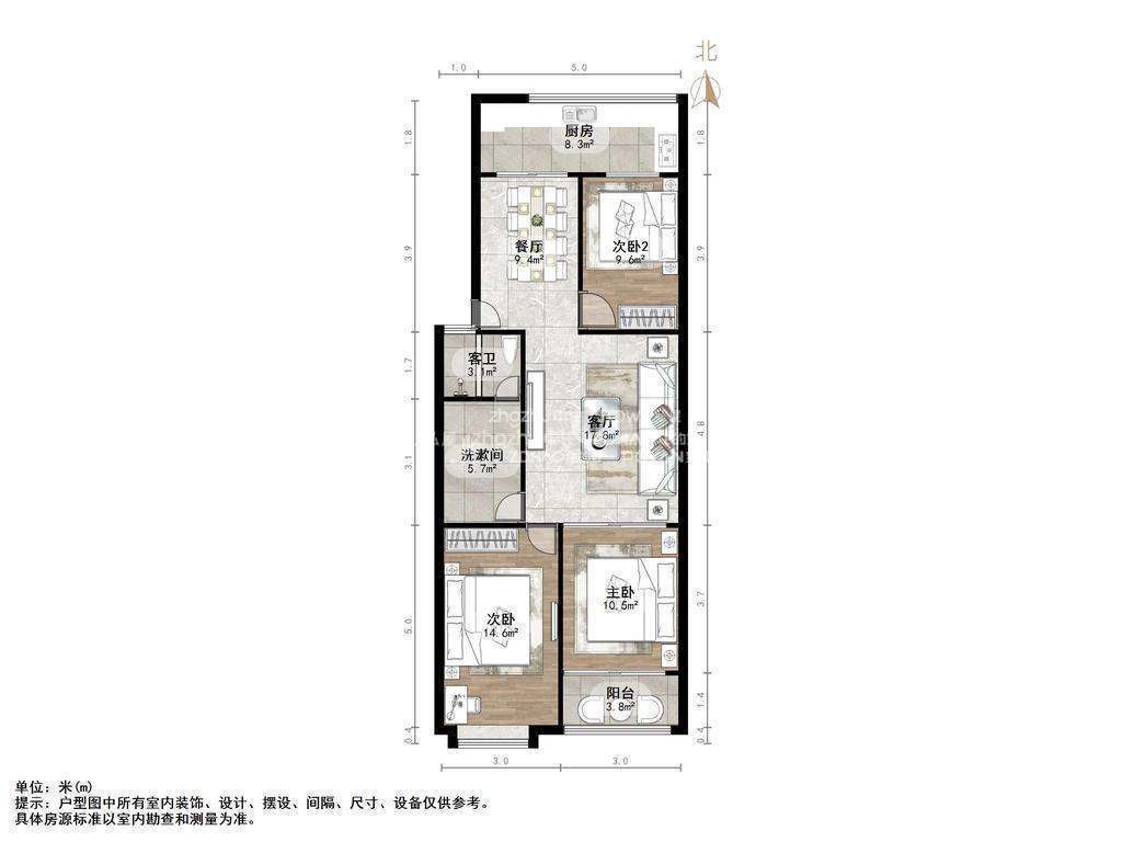朝向南北 建筑面积108㎡