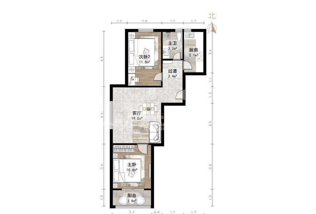 厅室2室1厅1卫1阳台