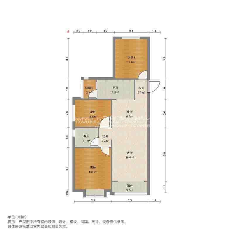 厅室3室2厅1卫1阳台