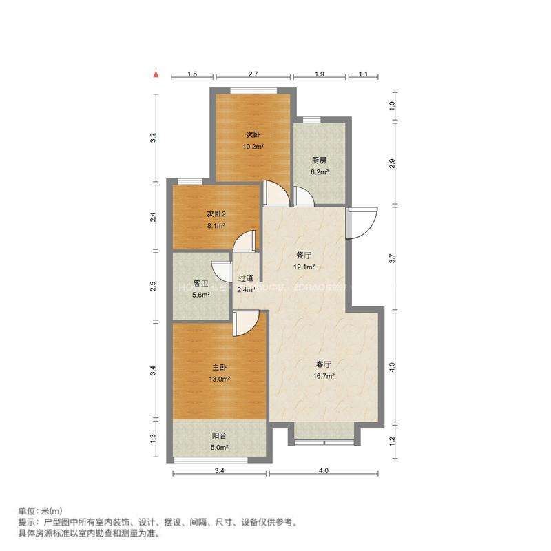 厅室3室2厅1卫1阳台