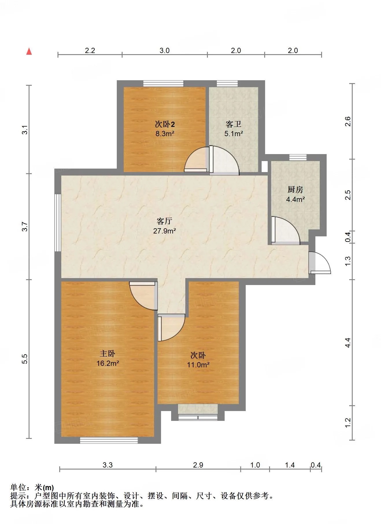厅室3室2厅1卫1阳台