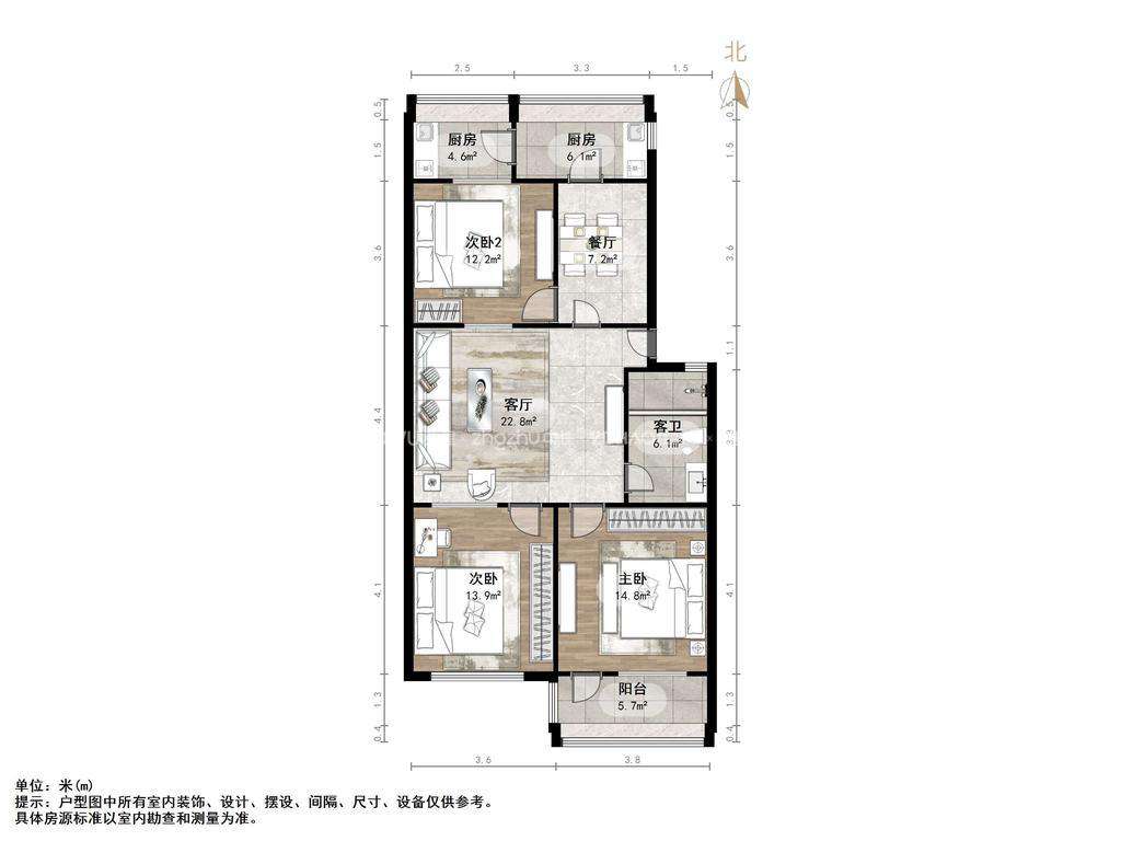 朝向南北 建筑面积105㎡