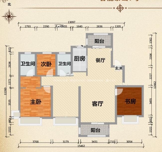 厅室3室2厅2卫1阳台