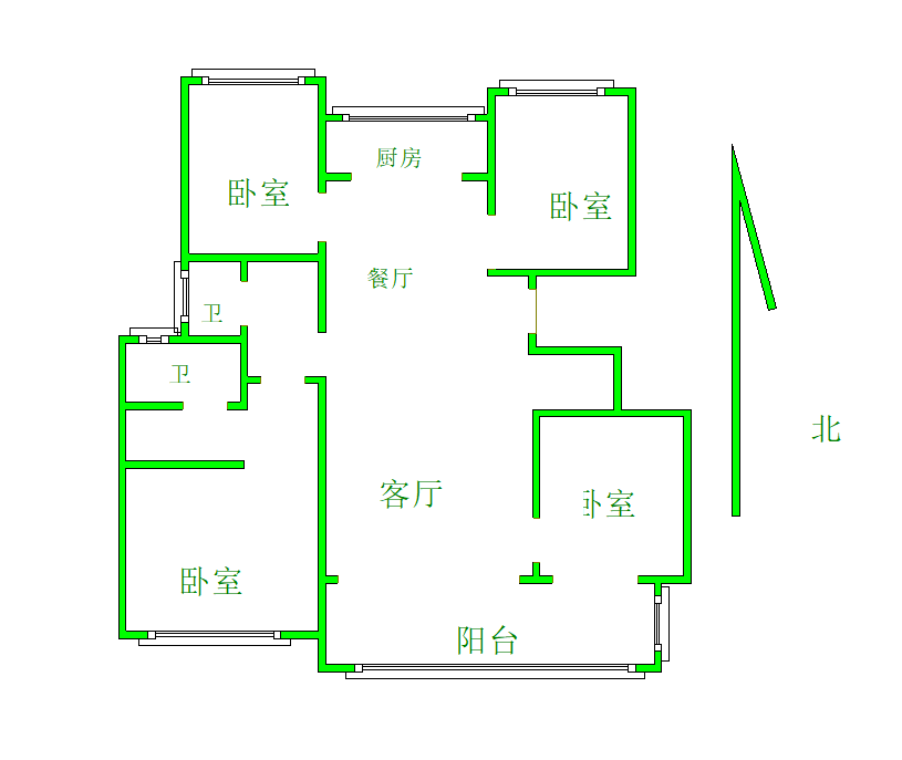 厅室3室2厅1卫1阳台