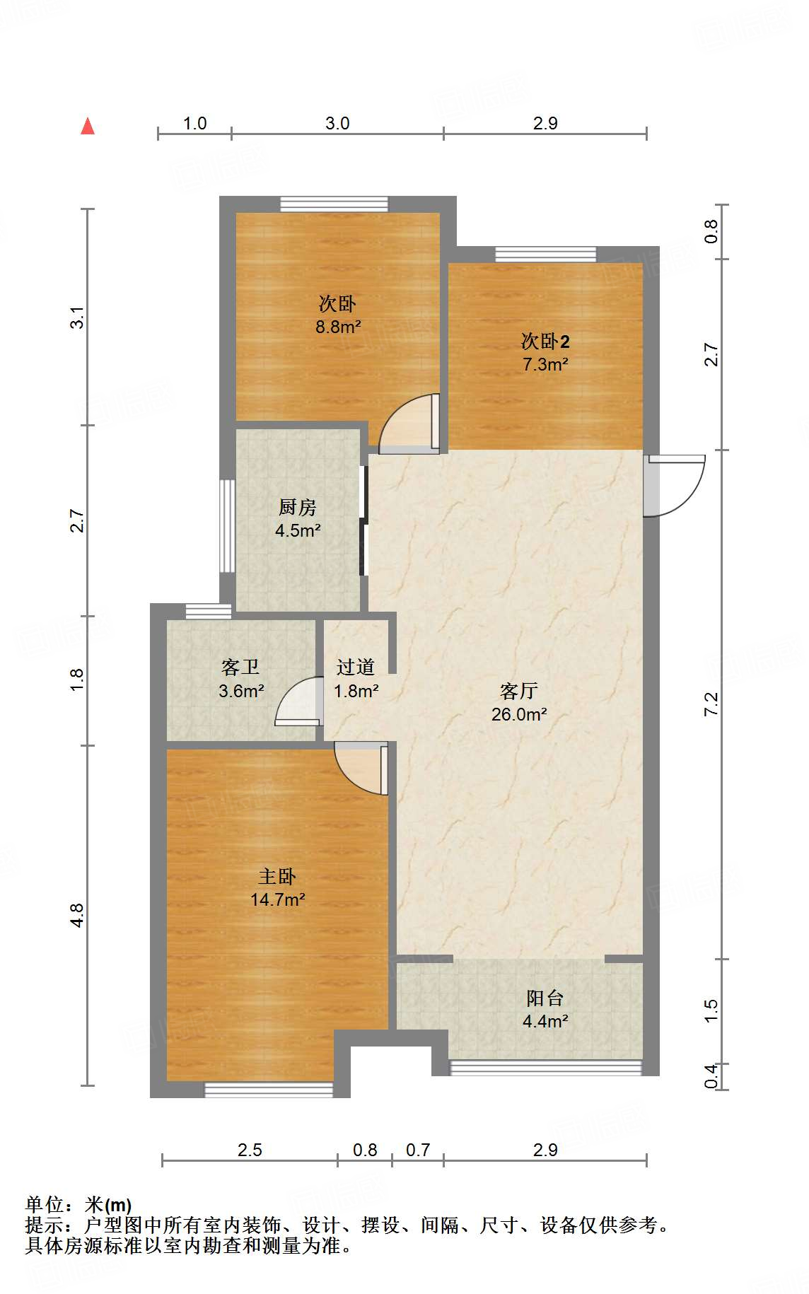 厅室3室2厅1卫1阳台