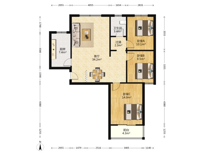 朝向南北 建筑面积118.15㎡