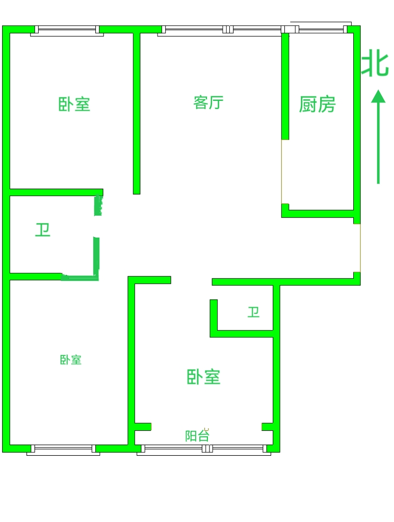 厅室3室2厅2卫1阳台