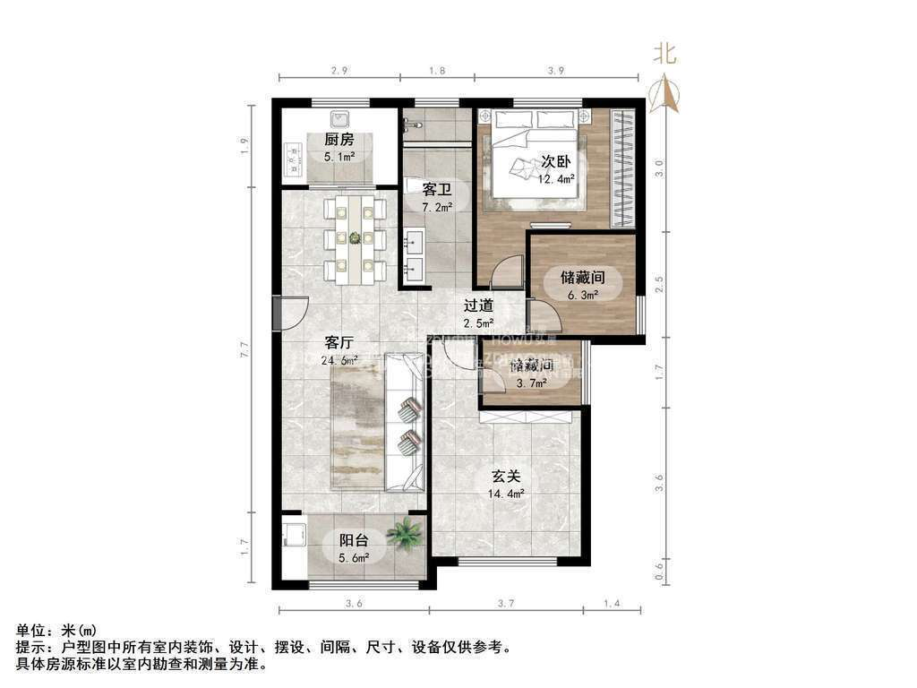 厅室3室2厅2卫1阳台