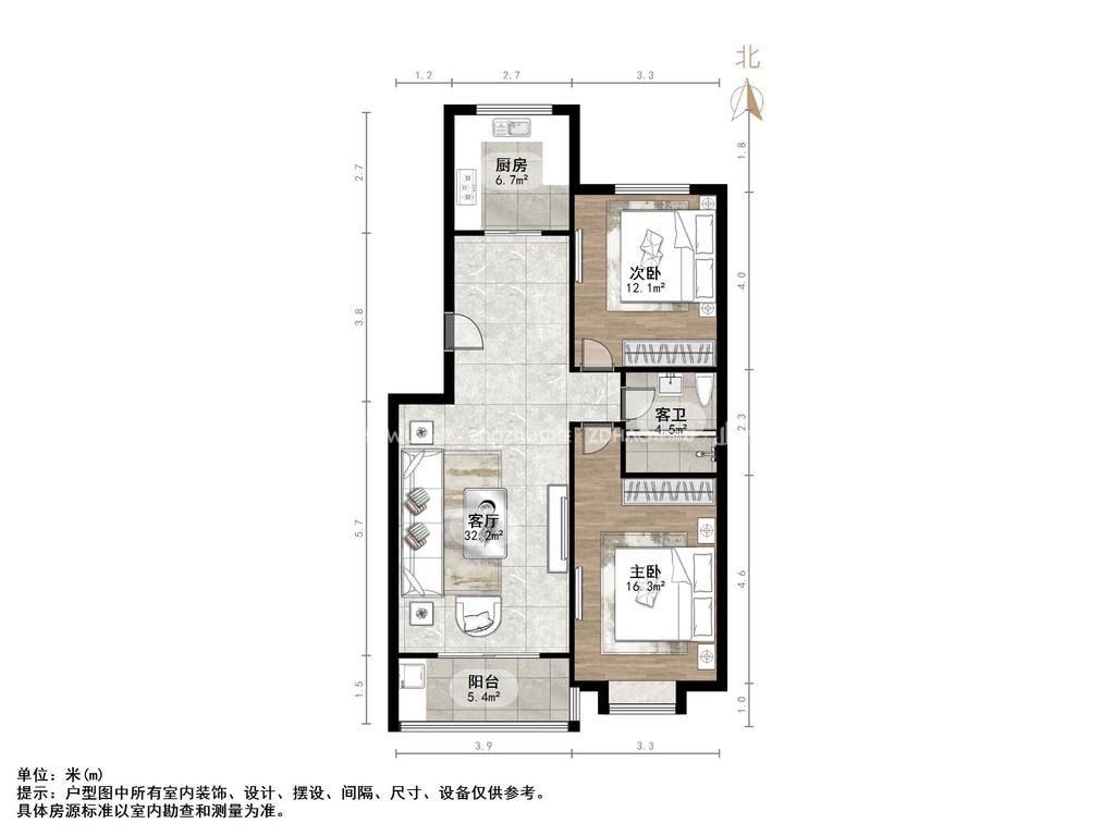 朝向南北 建筑面积104㎡