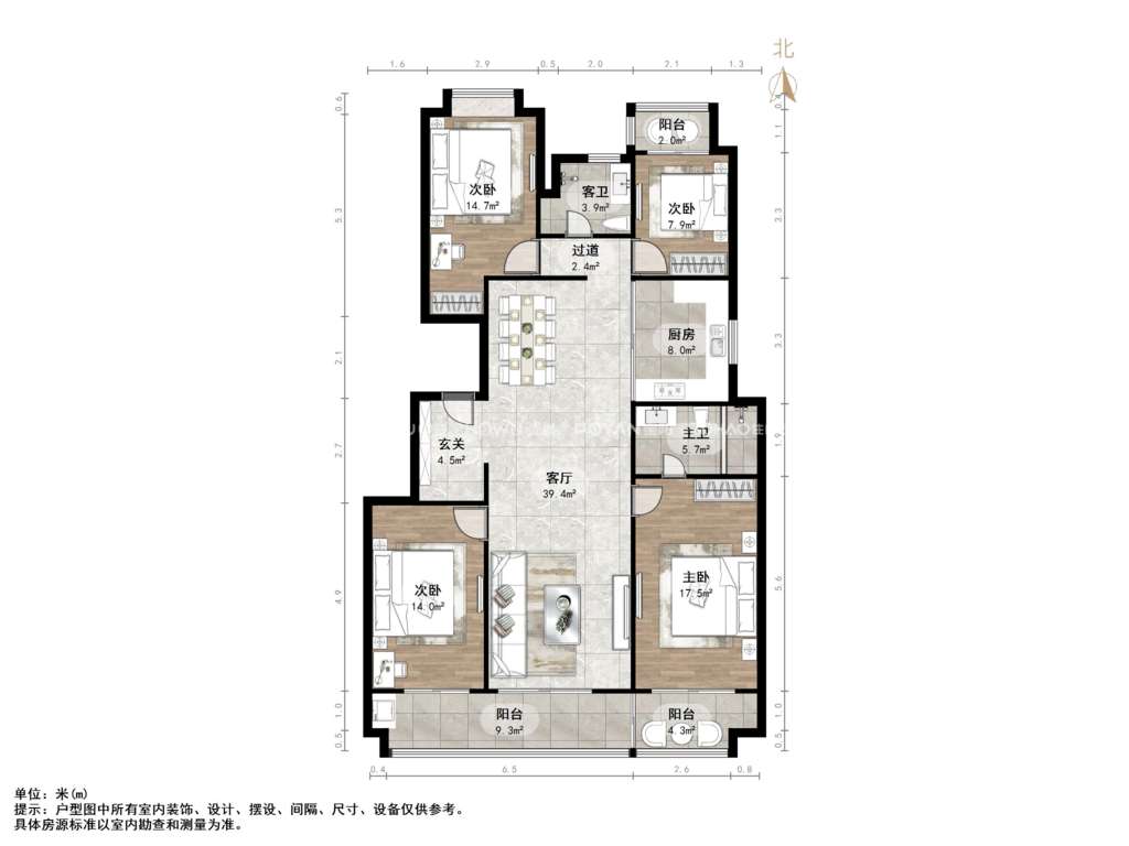 厅室4室2厅2卫1阳台