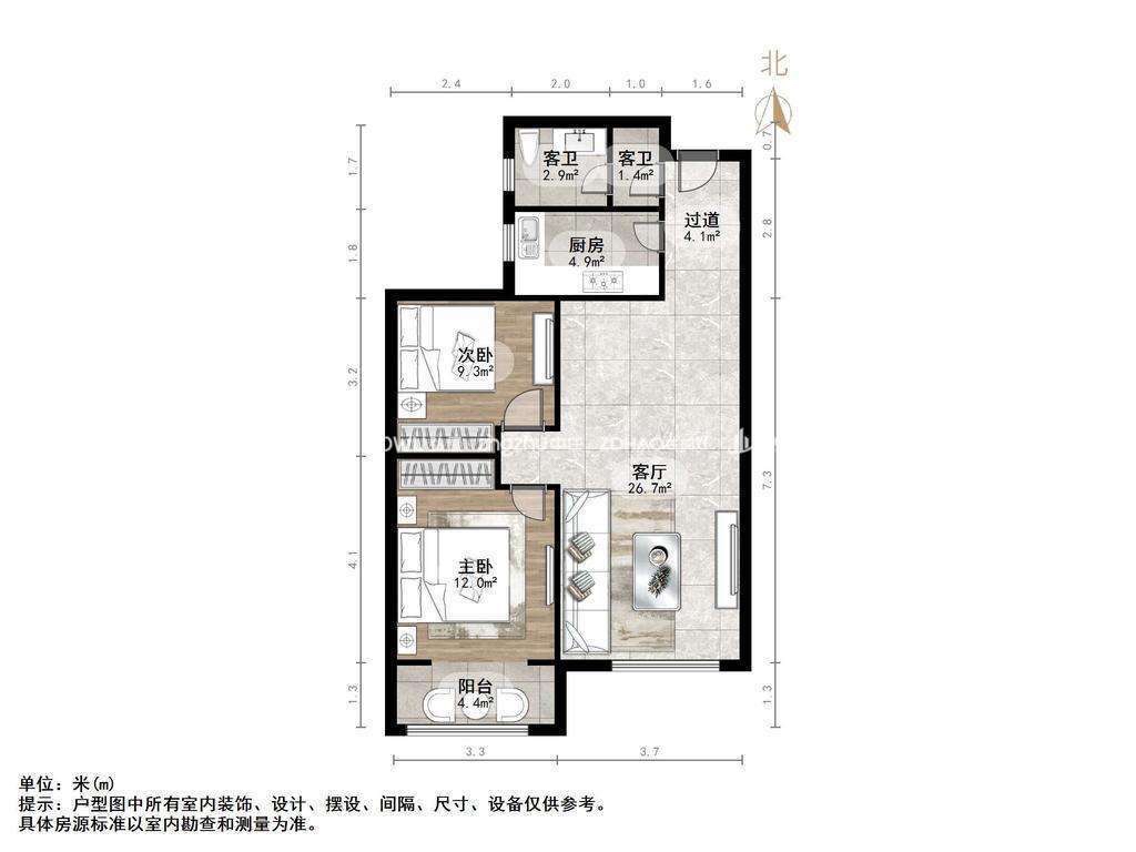 朝向南北 建筑面积96㎡