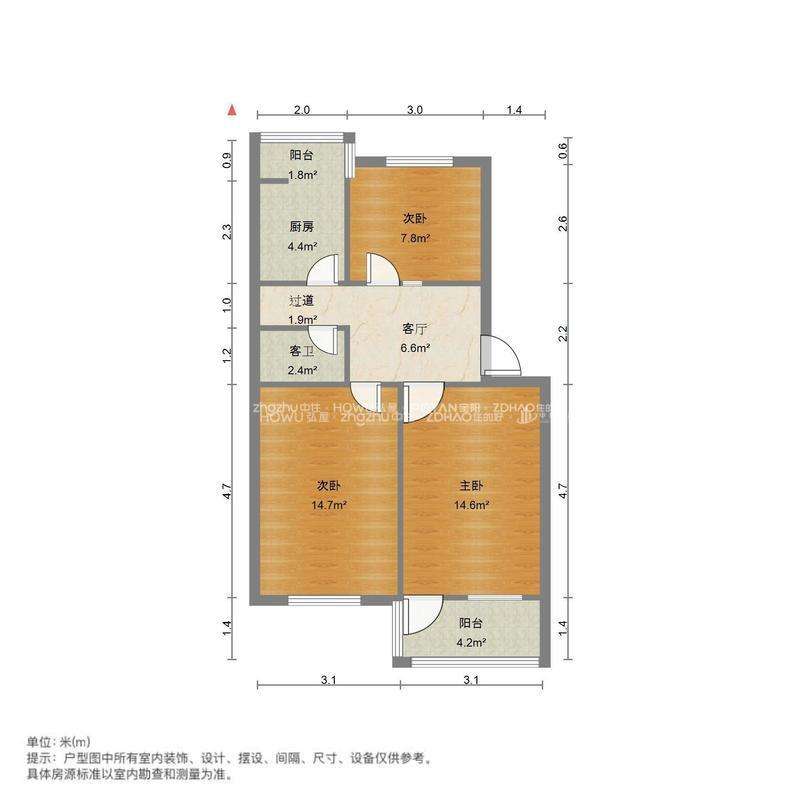 朝向南北 建筑面积76㎡