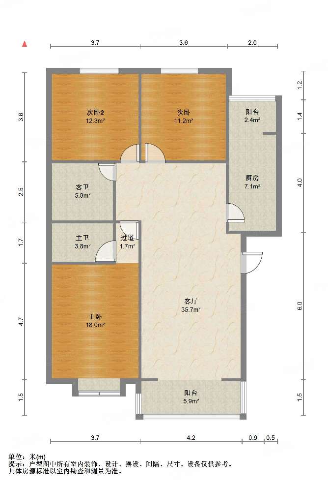 厅室3室2厅1卫1阳台