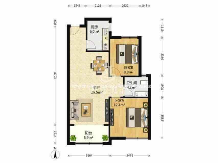 厅室2室2厅1卫1阳台
