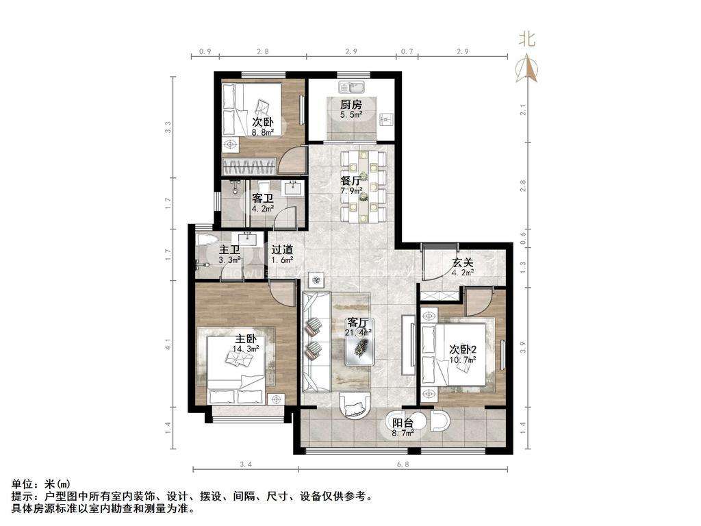 厅室3室2厅2卫2阳台