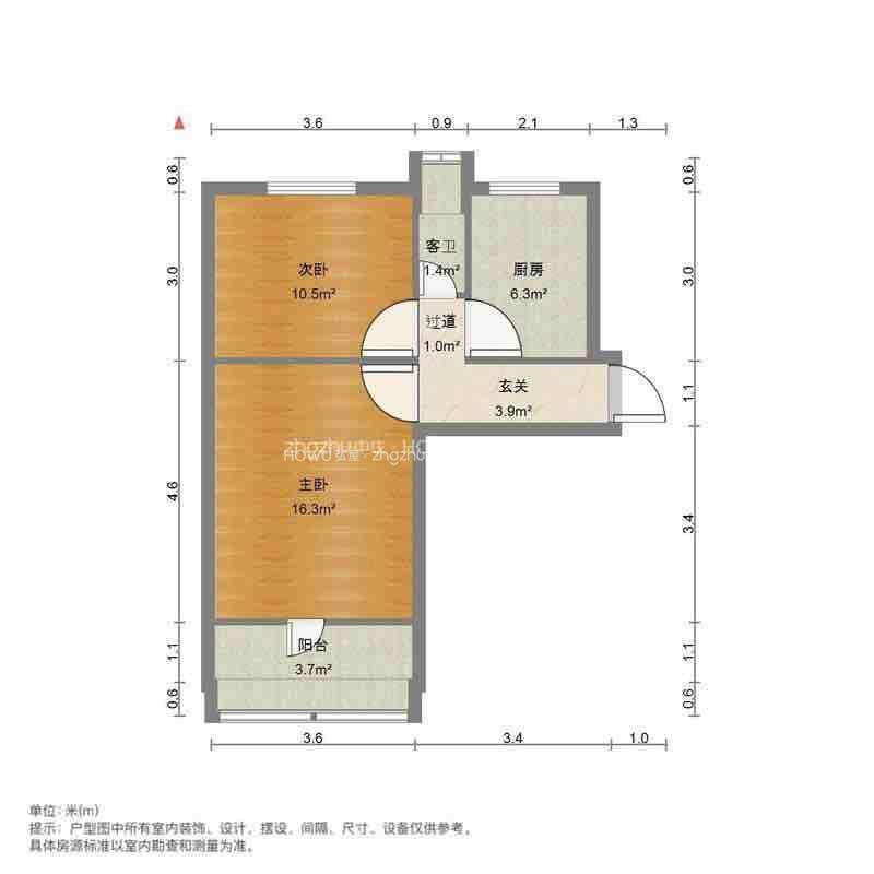 厅室2室1厅1卫1阳台