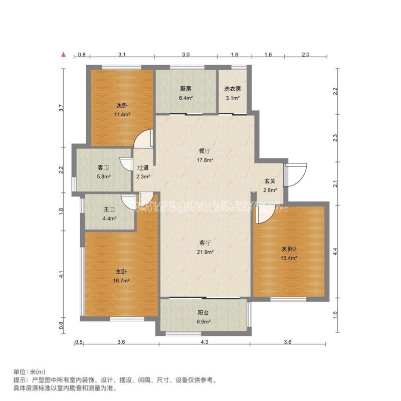 厅室3室2厅2卫0阳台