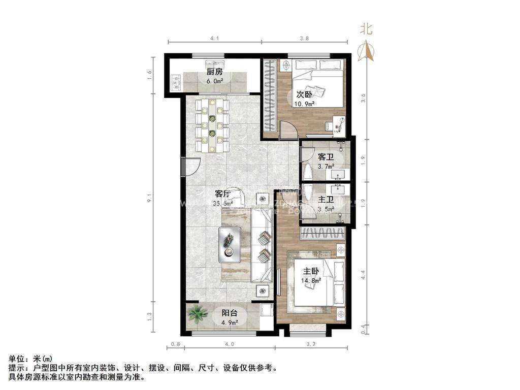朝向南北 建筑面积109.9㎡