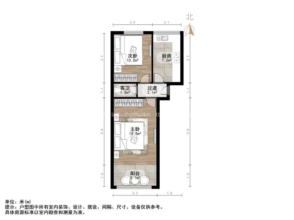 厅室2室1厅1卫1阳台