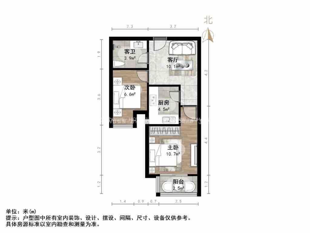 厅室2室1厅1卫1阳台