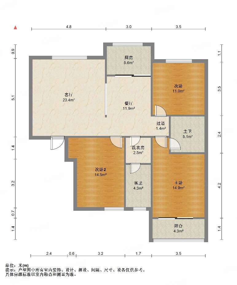 厅室3室2厅2卫0阳台