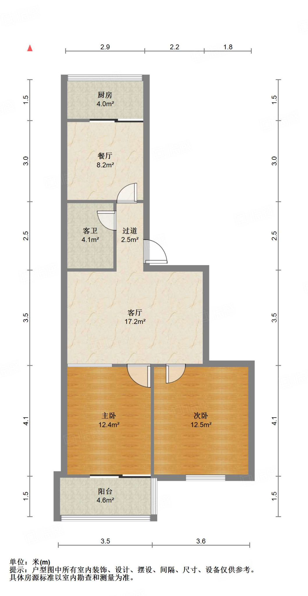 厅室2室1厅1卫1阳台