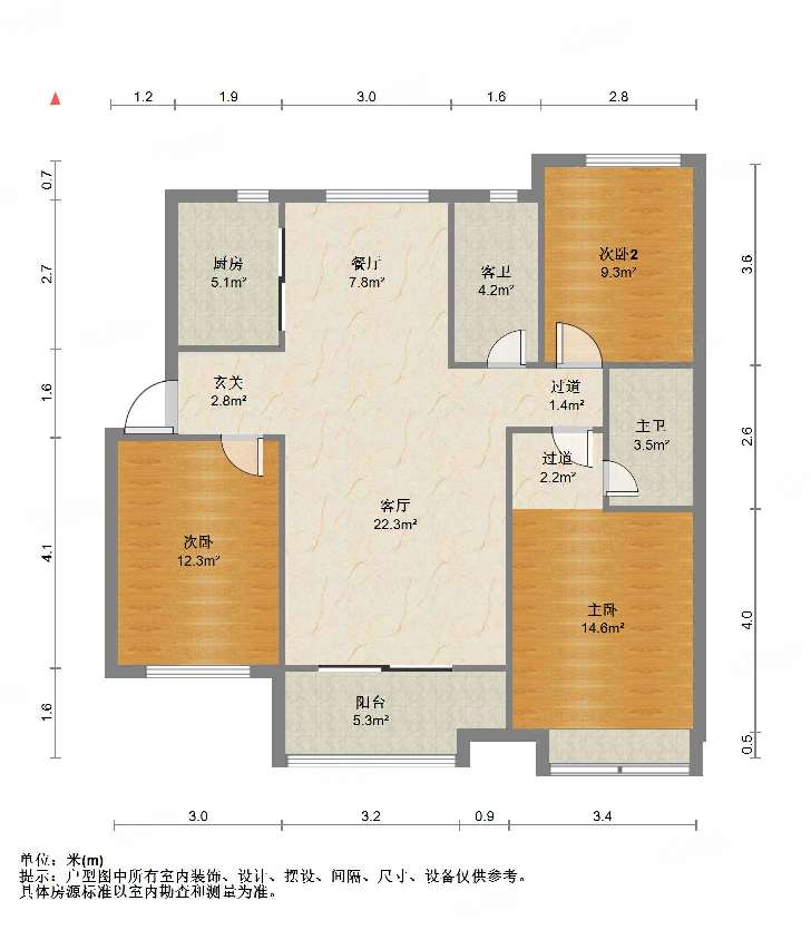 厅室3室2厅2卫1阳台