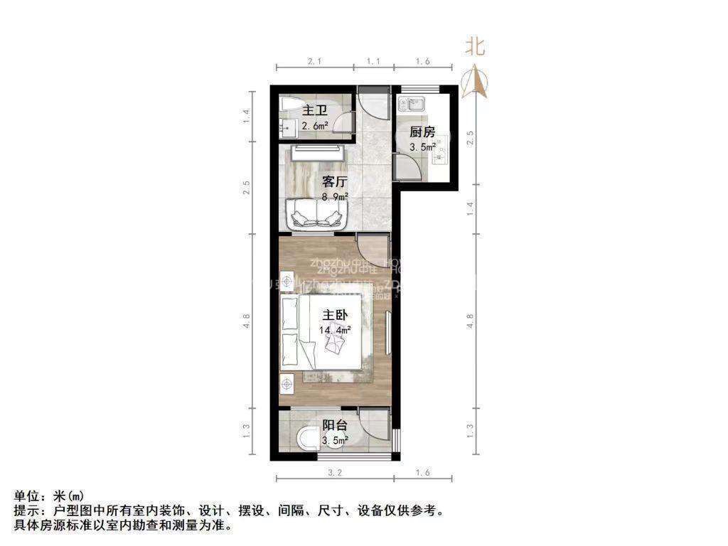 厅室1室1厅1卫1阳台