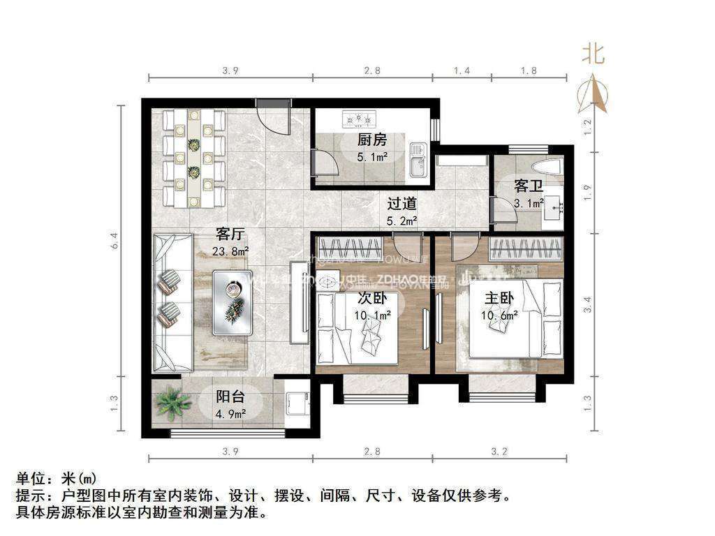 厅室2室1厅1卫1阳台