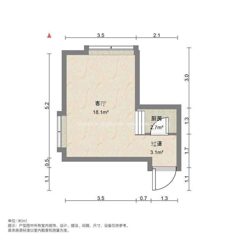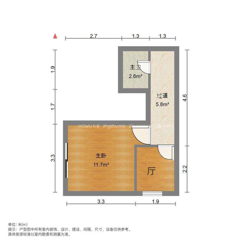厅室1室1厅1卫1阳台