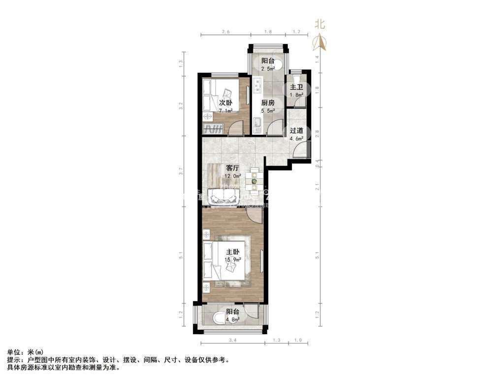 厅室2室1厅1卫1阳台