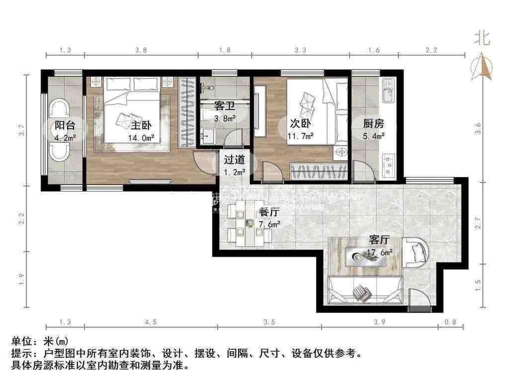 厅室2室1厅1卫1阳台