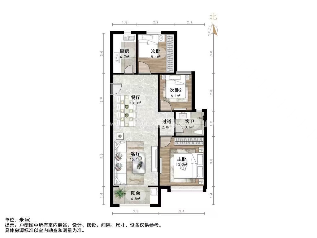 厅室3室2厅1卫1阳台