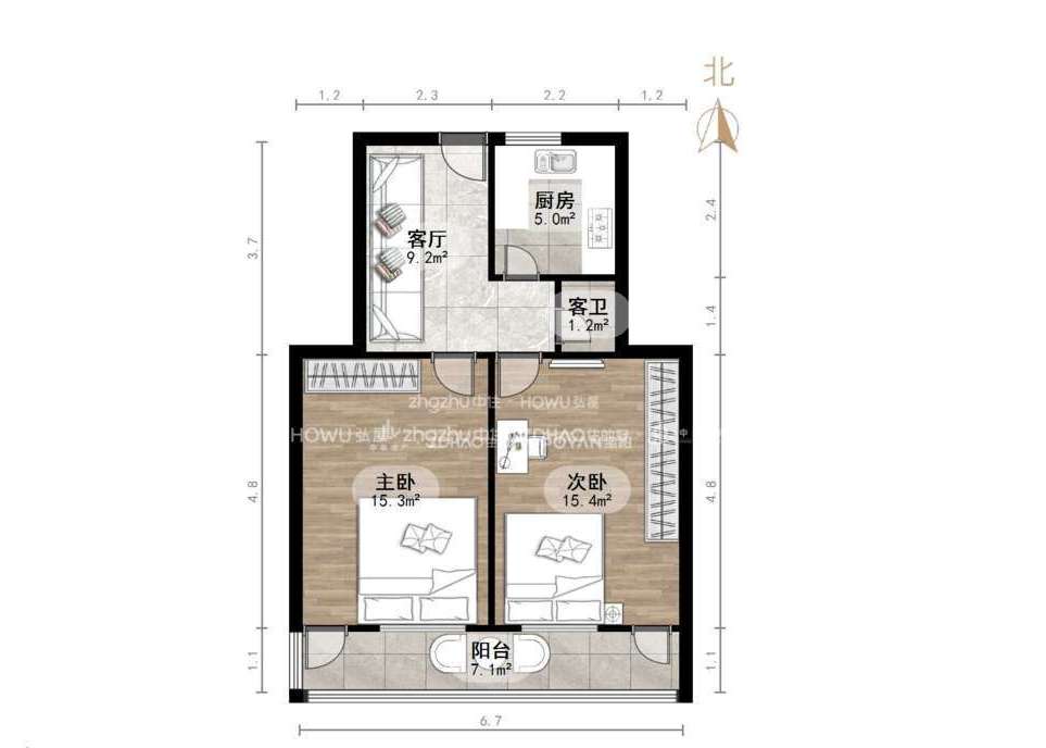 朝向南北 建筑面积75㎡