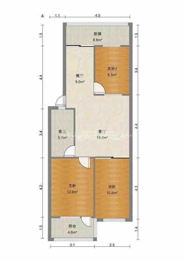 厅室3室2厅1卫1阳台
