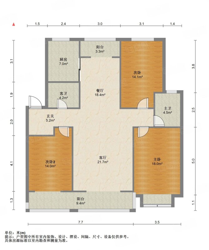 厅室3室2厅2卫2阳台