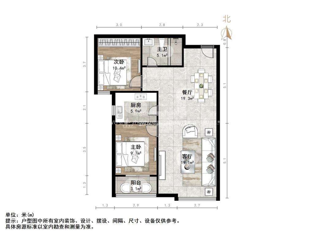 朝向南北 建筑面积91.89㎡