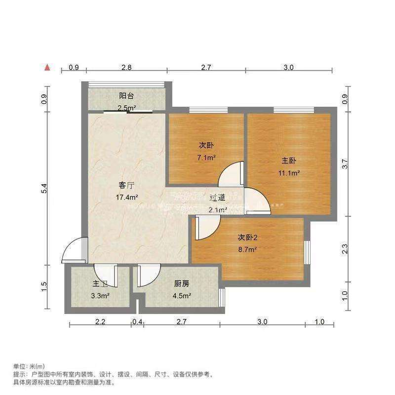 厅室3室1厅1卫1阳台