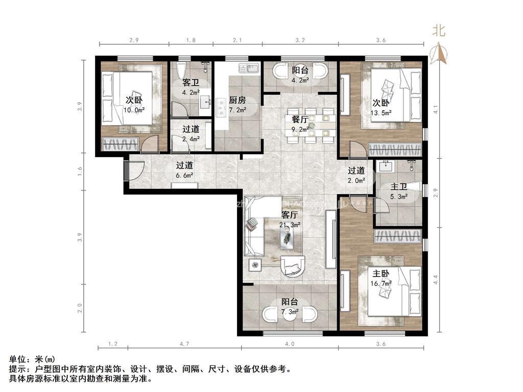 厅室3室2厅2卫0阳台