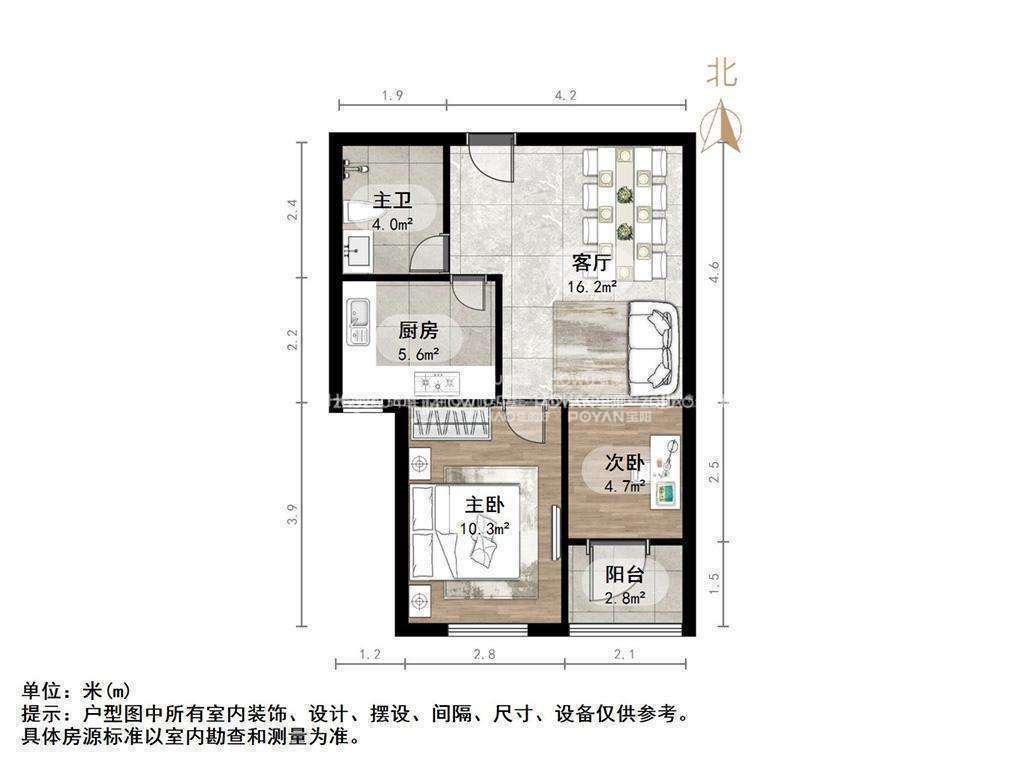 厅室2室1厅1卫1阳台