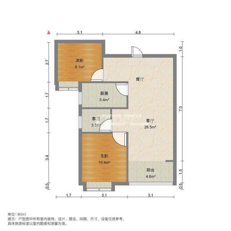 厅室2室2厅1卫1阳台