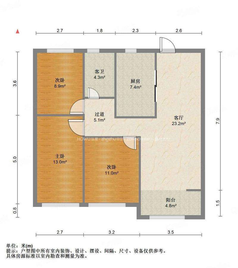 厅室3室2厅1卫1阳台