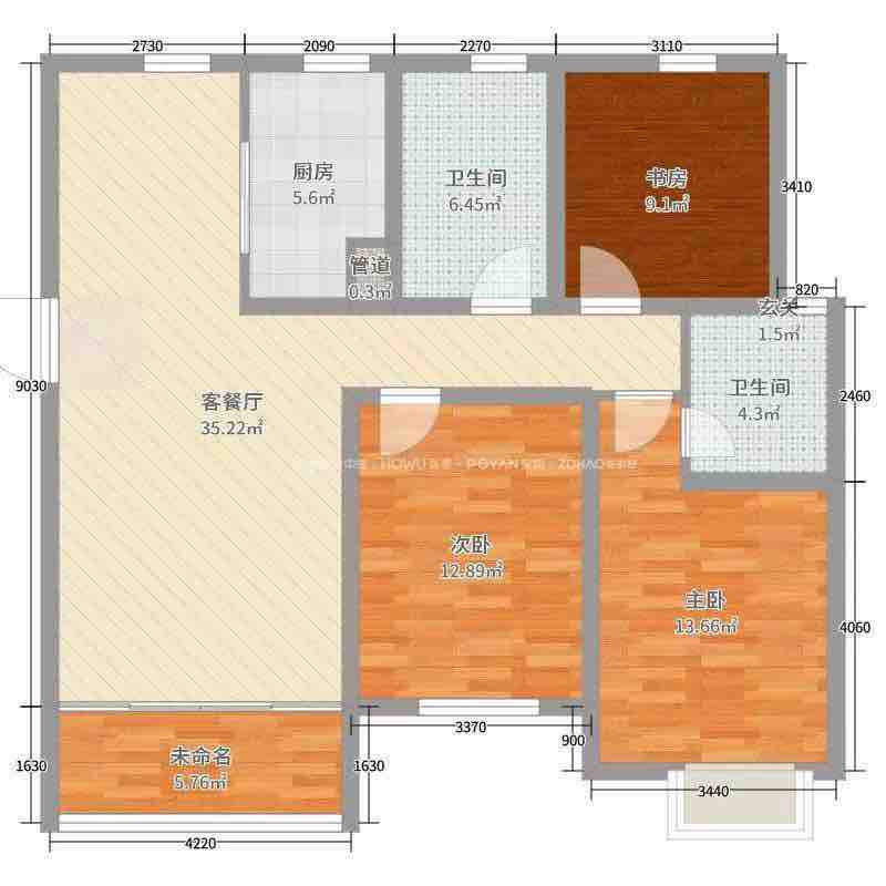 厅室3室2厅1卫0阳台