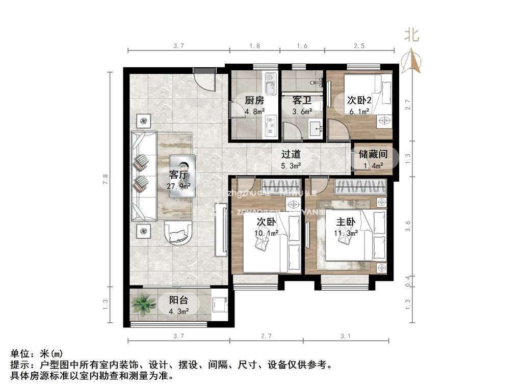 朝向南 建筑面积102㎡