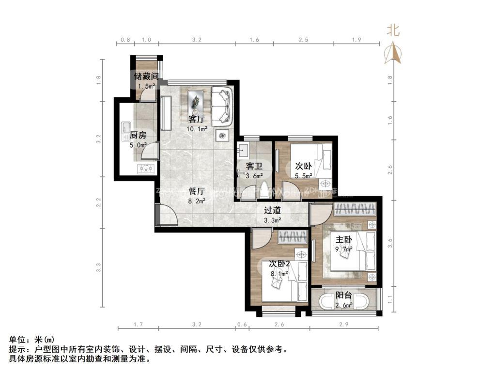 朝向南北 建筑面积96.8㎡
