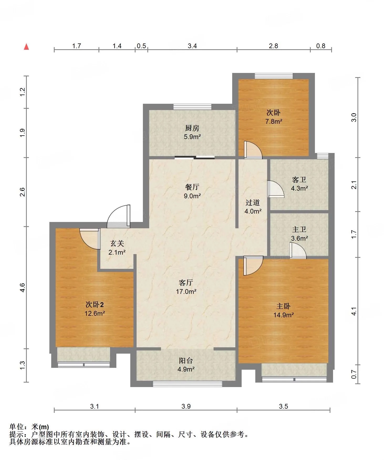 厅室3室2厅2卫1阳台